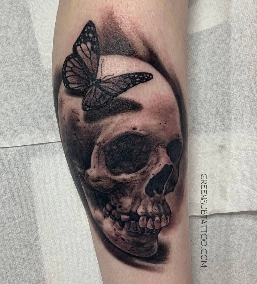 Cool Blackwork Skull Butterfly Tattoo Design By Olfink From Hamburg Germany Leg Tattoos Women Tattoos Best Tattoos For Women